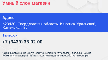 Умный слон, магазин по адресу 623430, Свердловская область, Каменск-Уральский, Каменская, 85 в дальнейшем Организация, размещена в следующих категориях: