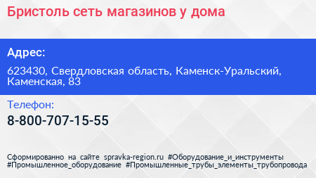 Бристоль, сеть магазинов у дома по адресу 623430, Свердловская область, Каменск-Уральский, Каменская, 83 в дальнейшем Организация, размещена в следующих категориях: