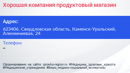 Хорошая компания, продуктовый магазин по адресу 623406, Свердловская область, Каменск-Уральский, Алюминиевая, 24 в дальнейшем Организация, размещена в следующих категориях:
