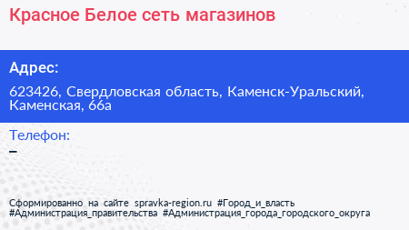 Красное & Белое, сеть магазинов по адресу 623426, Свердловская область, Каменск-Уральский, Каменская, 66а в дальнейшем Организация, размещена в следующих категориях: