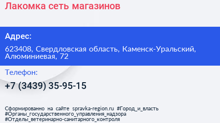 Лакомка, сеть магазинов по адресу 623408, Свердловская область, Каменск-Уральский, Алюминиевая, 72 в дальнейшем Организация, размещена в следующих категориях: