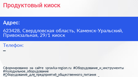 Продуктовый киоск по адресу 623428, Свердловская область, Каменск-Уральский, Привокзальная, 29/1 киоск в дальнейшем Организация, размещена в следующих категориях: