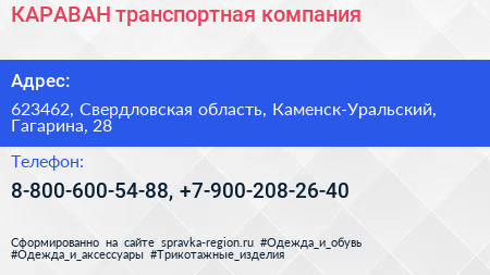 КАРАВАН, транспортная компания по адресу 623462, Свердловская область, Каменск-Уральский, Гагарина, 28 в дальнейшем Организация, размещена в следующих категориях: