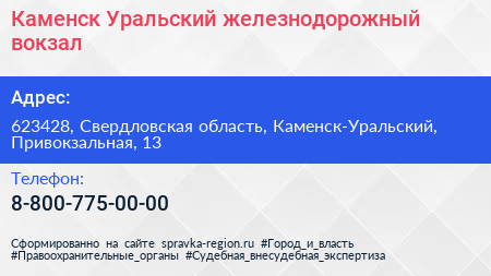 Каменск-Уральский, железнодорожный вокзал по адресу 623428, Свердловская область, Каменск-Уральский, Привокзальная, 13 в дальнейшем Организация, размещена в следующих категориях: