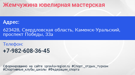 Жемчужина, ювелирная мастерская по адресу 623428, Свердловская область, Каменск-Уральский, проспект Победы, 33а в дальнейшем Организация, размещена в следующих категориях: