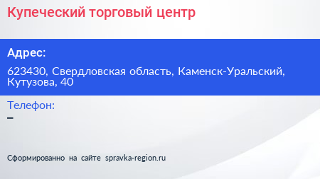 Купеческий, торговый центр по адресу 623430, Свердловская область, Каменск-Уральский, Кутузова, 40 в дальнейшем Организация, размещена в следующих категориях:
