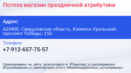 Потеха, магазин праздничной атрибутики по адресу 623400, Свердловская область, Каменск-Уральский, проспект Победы, 11Б в дальнейшем Организация, размещена в следующих категориях: