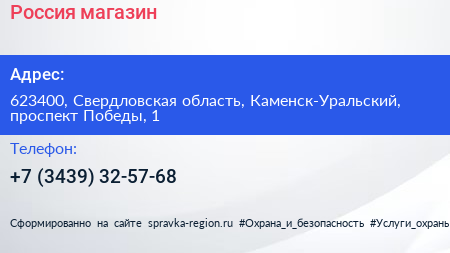 Россия, магазин по адресу 623400, Свердловская область, Каменск-Уральский, проспект Победы, 1 в дальнейшем Организация, размещена в следующих категориях:
