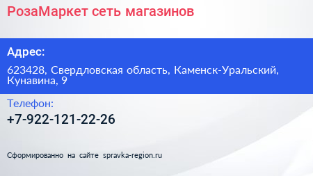 РозаМаркет, сеть магазинов по адресу 623428, Свердловская область, Каменск-Уральский, Кунавина, 9 в дальнейшем Организация, размещена в следующих категориях:
