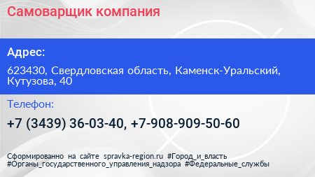 Самоварщик, компания по адресу 623430, Свердловская область, Каменск-Уральский, Кутузова, 40 в дальнейшем Организация, размещена в следующих категориях: