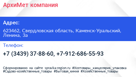 АрхиМет, компания по адресу 623462, Свердловская область, Каменск-Уральский, Ленина, 3а в дальнейшем Организация, размещена в следующих категориях: