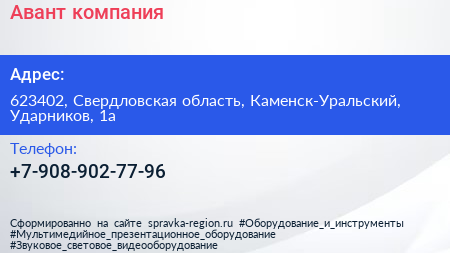 Авант, компания по адресу 623402, Свердловская область, Каменск-Уральский, Ударников, 1а в дальнейшем Организация, размещена в следующих категориях: