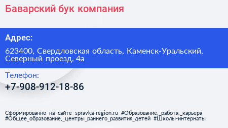 Баварский бук, компания по адресу 623400, Свердловская область, Каменск-Уральский, Северный проезд, 4а в дальнейшем Организация, размещена в следующих категориях:
