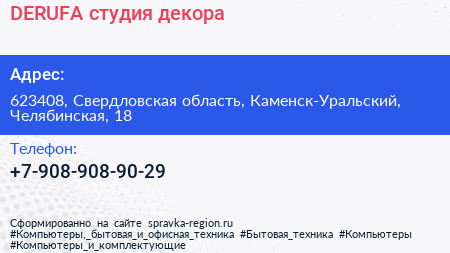 DERUFA, студия декора по адресу 623408, Свердловская область, Каменск-Уральский, Челябинская, 18 в дальнейшем Организация, размещена в следующих категориях: