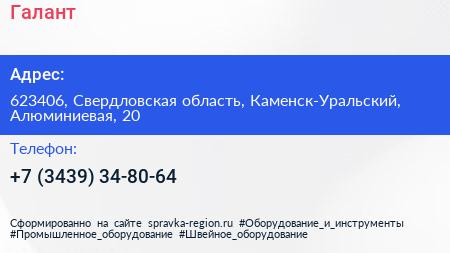 Галант по адресу 623406, Свердловская область, Каменск-Уральский, Алюминиевая, 20 в дальнейшем Организация, размещена в следующих категориях: