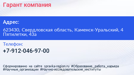 Гарант, компания по адресу 623430, Свердловская область, Каменск-Уральский, 4 Пятилетки, 43а в дальнейшем Организация, размещена в следующих категориях: