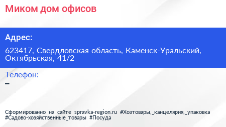 Миком, дом офисов по адресу 623417, Свердловская область, Каменск-Уральский, Октябрьская, 41/2 в дальнейшем Организация, размещена в следующих категориях: