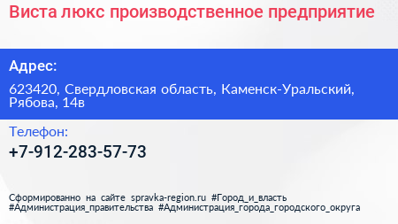 Виста-люкс, производственное предприятие по адресу 623420, Свердловская область, Каменск-Уральский, Рябова, 14в в дальнейшем Организация, размещена в следующих категориях: