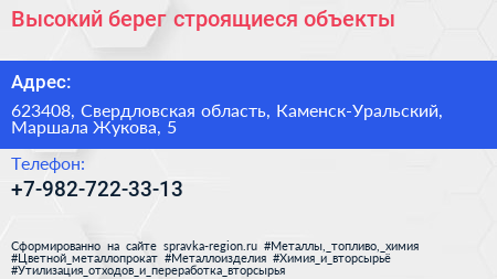 Высокий берег, строящиеся объекты по адресу 623408, Свердловская область, Каменск-Уральский, Маршала Жукова, 5 в дальнейшем Организация, размещена в следующих категориях: