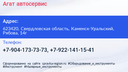 Агат, автосервис по адресу 623420, Свердловская область, Каменск-Уральский, Рябова, 14г в дальнейшем Организация, размещена в следующих категориях: