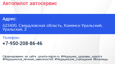 Автопилот, автосервис по адресу 623400, Свердловская область, Каменск-Уральский, Уральская, 2 в дальнейшем Организация, размещена в следующих категориях: