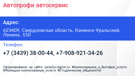 Автопрофи, автосервис по адресу 623409, Свердловская область, Каменск-Уральский, Ленина, 150 в дальнейшем Организация, размещена в следующих категориях: