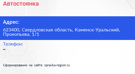 Адрес: Свердловская область, Каменск-Уральский, Шахтёрская, 1а/1