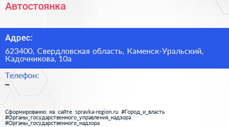 Автостоянка по адресу 623400, Свердловская область, Каменск-Уральский, Кадочникова, 10а в дальнейшем Организация, размещена в следующих категориях:
