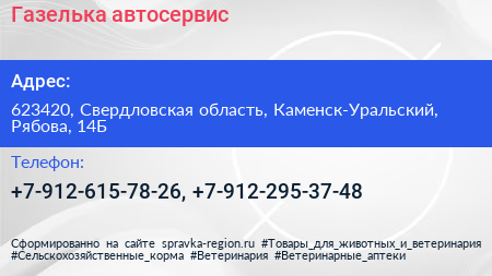 Газелька, автосервис по адресу 623420, Свердловская область, Каменск-Уральский, Рябова, 14Б в дальнейшем Организация, размещена в следующих категориях: