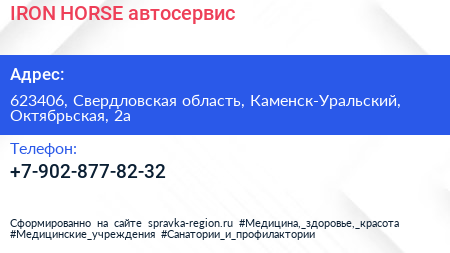 IRON HORSE, автосервис по адресу 623406, Свердловская область, Каменск-Уральский, Октябрьская, 2а в дальнейшем Организация, размещена в следующих категориях: