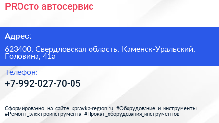 PROсто, автосервис по адресу 623400, Свердловская область, Каменск-Уральский, Головина, 41а в дальнейшем Организация, размещена в следующих категориях: