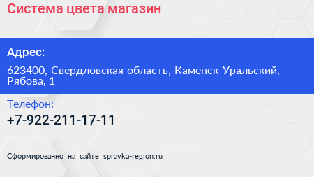 Система цвета, магазин по адресу 623400, Свердловская область, Каменск-Уральский, Рябова, 1 в дальнейшем Организация, размещена в следующих категориях: