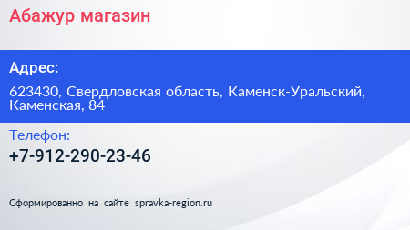 Абажур, магазин по адресу 623430, Свердловская область, Каменск-Уральский, Каменская, 84 в дальнейшем Организация, размещена в следующих категориях: