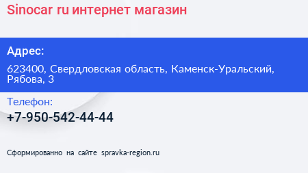 Sinocar.ru, интернет-магазин в Каменске-Уральском