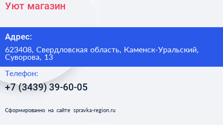 Уют, магазин по адресу 623408, Свердловская область, Каменск-Уральский, Суворова, 13 в дальнейшем Организация, размещена в следующих категориях: