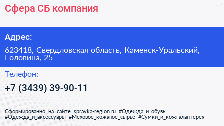 Сфера СБ, компания по адресу 623418, Свердловская область, Каменск-Уральский, Головина, 25 в дальнейшем Организация, размещена в следующих категориях: