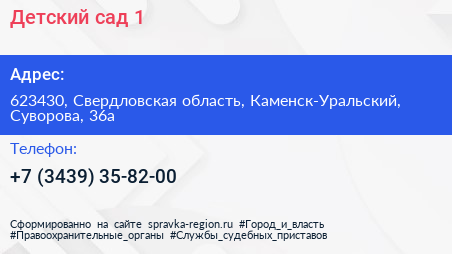 Детский сад №1 по адресу 623430, Свердловская область, Каменск-Уральский, Суворова, 36а в дальнейшем Организация, размещена в следующих категориях: