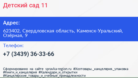 Детский сад №11 по адресу 623402, Свердловская область, Каменск-Уральский, Озёрная, 9 в дальнейшем Организация, размещена в следующих категориях: