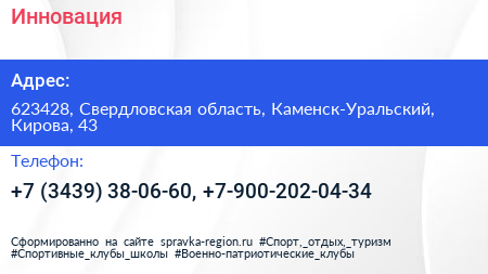 Инновация по адресу 623428, Свердловская область, Каменск-Уральский, Кирова, 43 в дальнейшем Организация, размещена в следующих категориях: