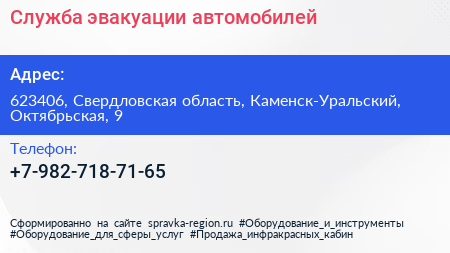 Служба эвакуации автомобилей по адресу 623406, Свердловская область, Каменск-Уральский, Октябрьская, 9 в дальнейшем Организация, размещена в следующих категориях: