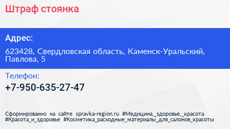 Штраф-стоянка по адресу 623428, Свердловская область, Каменск-Уральский, Павлова, 5 в дальнейшем Организация, размещена в следующих категориях: