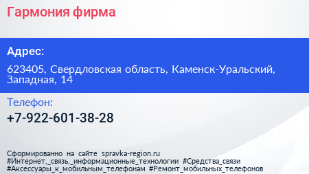 Гармония, фирма по адресу 623405, Свердловская область, Каменск-Уральский, Западная, 14 в дальнейшем Организация, размещена в следующих категориях: