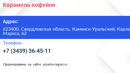 Карамель, кофейня по адресу 623400, Свердловская область, Каменск-Уральский, Карла Маркса, 62 в дальнейшем Организация, размещена в следующих категориях: