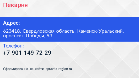 Пекарня по адресу 623418, Свердловская область, Каменск-Уральский, проспект Победы, 93 в дальнейшем Организация, размещена в следующих категориях: