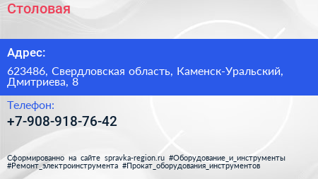 Столовая по адресу 623486, Свердловская область, Каменск-Уральский, Дмитриева, 8 в дальнейшем Организация, размещена в следующих категориях: