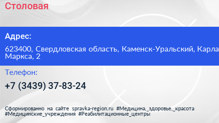 Столовая по адресу 623400, Свердловская область, Каменск-Уральский, Карла Маркса, 2 в дальнейшем Организация, размещена в следующих категориях: