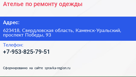 Ателье по ремонту одежды по адресу 623418, Свердловская область, Каменск-Уральский, проспект Победы, 93 в дальнейшем Организация, размещена в следующих категориях: