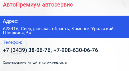 АвтоПремиум, автосервис по адресу 623416, Свердловская область, Каменск-Уральский, Шишкина, 5а в дальнейшем Организация, размещена в следующих категориях:
