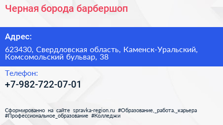 Черная борода, барбершоп по адресу 623430, Свердловская область, Каменск-Уральский, Комсомольский бульвар, 38 в дальнейшем Организация, размещена в следующих категориях: