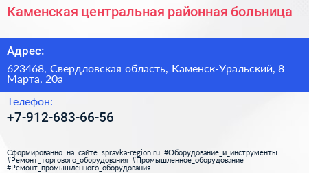Каменская центральная районная больница по адресу 623468, Свердловская область, Каменск-Уральский, 8 Марта, 20а в дальнейшем Организация, размещена в следующих категориях: